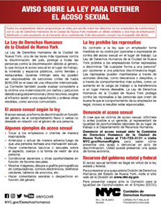 AVISO SOBRE LA LEY PARA DETENER EL ACOSO SEXUAL