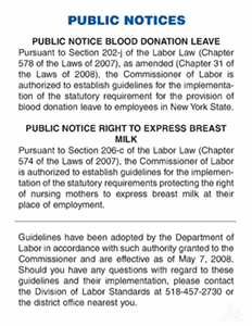 Public notice blood donation leave and right to express breast milk