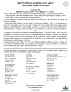 New York State Department of Labor Division of Labor Standards Guidelines Notice Requirements for Fringe Benefits and Hours